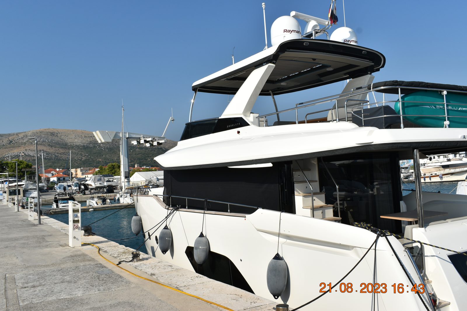 The pre-purchase survey was performed on board M.Y. “Lovely” on 21.08.2023 at Marina Baotic, Trogir – Croatia.