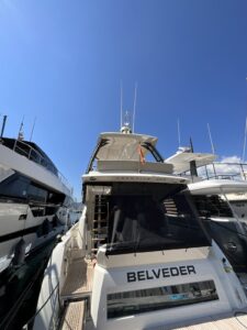 The pre-purchase survey was performed on board M.Y. “Belvedere” (Prestige 460) on 05.09.2025 at Marina Lazure, Meljine – Montenegro.